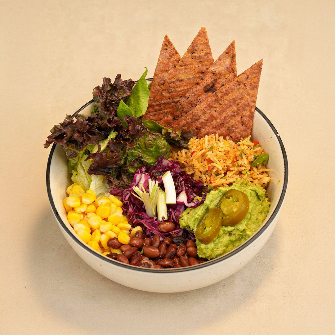 A colourful salad of avocado, corn, rice, kidney beans and lettuce tossed with bold Mexican flavours. Filling yet wholesome.